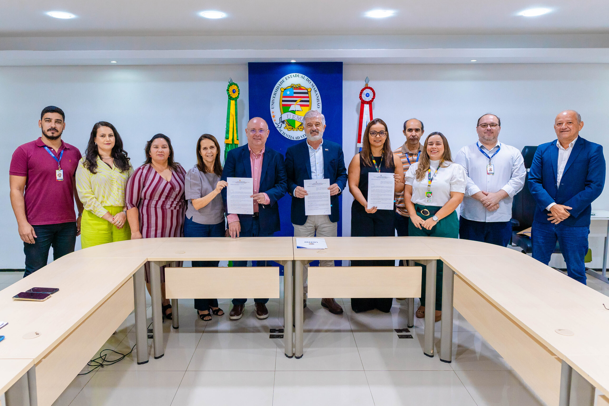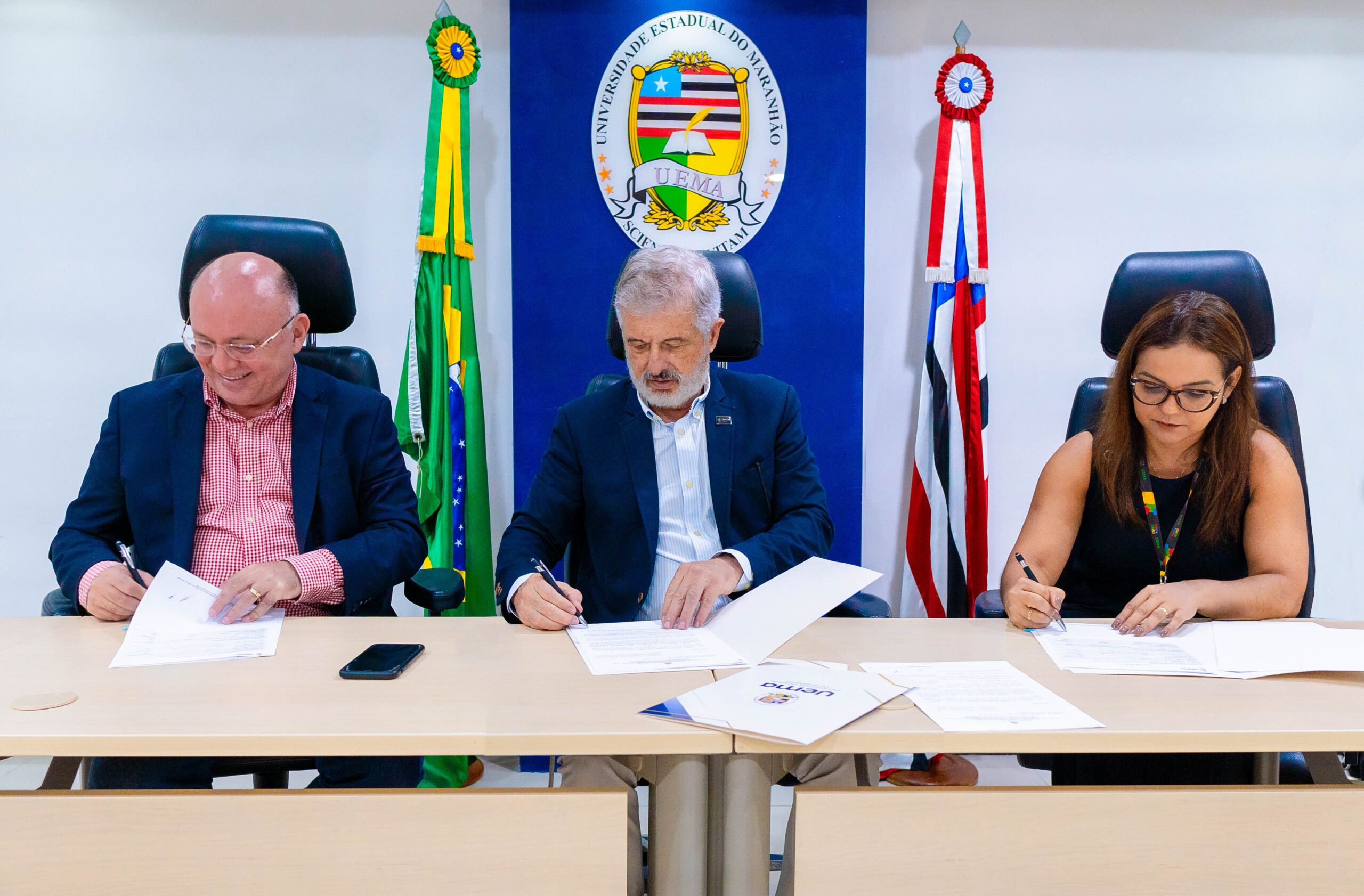Na manhã desta segunda-feira (10), a Universidade Estadual do Maranhão (Uema) firmou uma parceria com a Secretaria de Estado de Meio Ambiente e Recursos Naturais do Maranhão (SEMA) para a implantação de um plano de gestão de resíduos sólidos nos 19 municípios onde a universidade possui campi. A cerimônia de assinatura do Acordo de Cooperação Técnica ocorreu na sala de reuniões da Reitoria da Uema.