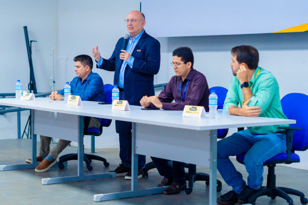 A mesa de abertura contou com a presença do vice-reitor da UEMA, Paulo Catunda; do diretor do CCT, Fernando Oliveira; do presidente do Conselho Regional de Engenharia e Agronomia do Maranhão (Crea-MA), Wesley de Assis; e do gerente de Gestão de Processos da Vale, Rafael Borges Pinho.