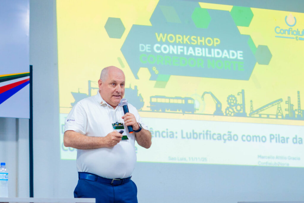 A palestra de abertura foi apresentada por Marcello Attilio, diretor de confiabilidade da Confialub, com o tema “Do Atrito à Excelência: Lubrificação como Pilar da Confiabilidade”.