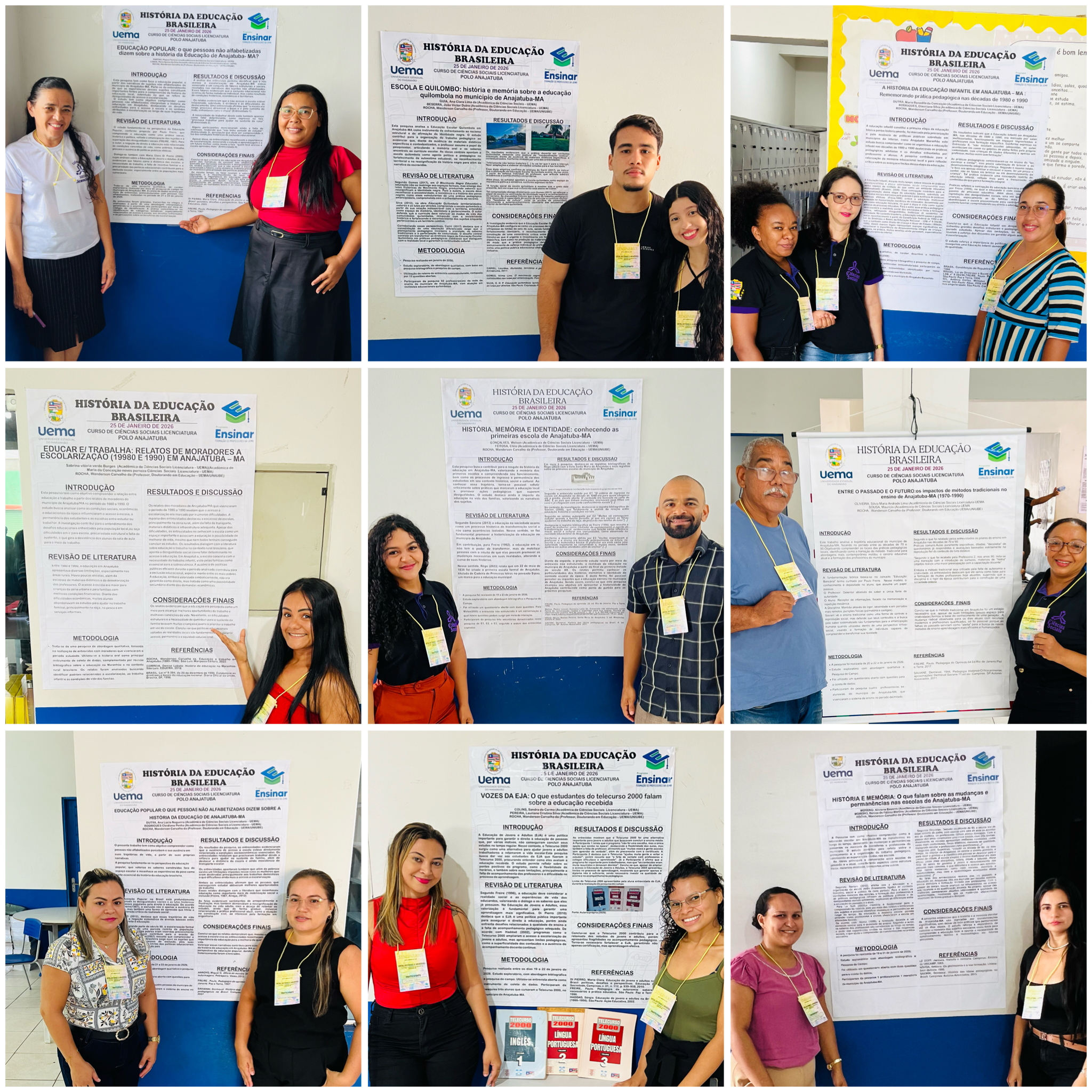 O evento foi organizado por estudantes do curso de Ciências Sociais do Polo Anajatuba-MA, da Universidade Estadual do Maranhão (Uema), que apresentaram os resultados de 12 pesquisas de campo em formato de pôster. Os trabalhos foram desenvolvidos no âmbito da disciplina História da Educação Brasileira, sob a orientação do professor Me. Wanderson Carvalho da Rocha.