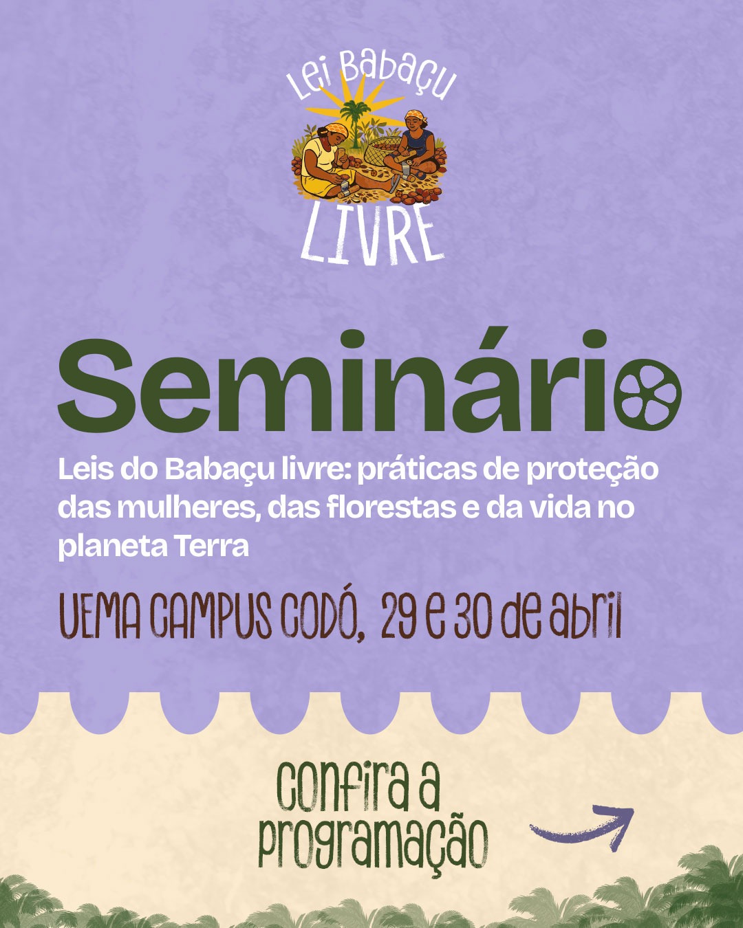 A programação abordará a importância das leis do babaçu livre para a proteção das comunidades tradicionais, além de discutir práticas voltadas à preservação ambiental e ao enfrentamento das mudanças climáticas.