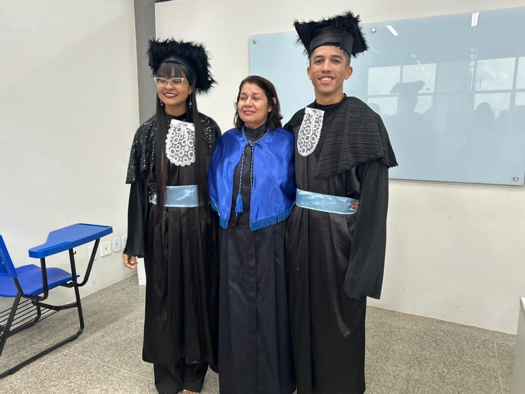 A Diretora do Campus Caxias, Prof.ª Valéria Cristina Pinheiro, representando o Reitor Walter Canales, conferiu a outorga de grau aos formandos Maria José Eduarda Medeiros Silva e Marcelo Alves Costa.