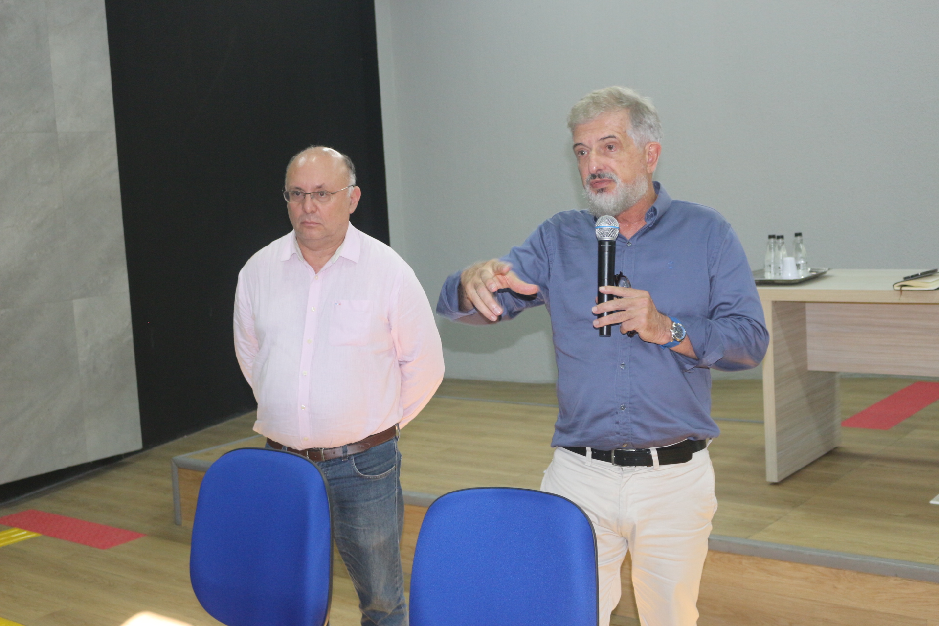 No período da tarde, as atividades seguiram no auditório Profa. Rose Marie, no prédio de Ciências da Saúde, onde o reitor se reuniu com gestores e estudantes do curso de Medicina. Durante o encontro, foi apresentado um panorama da graduação, com destaque para temas como o Exame Nacional de Avaliação da Formação Médica (Enamed), infraestrutura, preceptoria e insumos, além de propostas de melhorias.