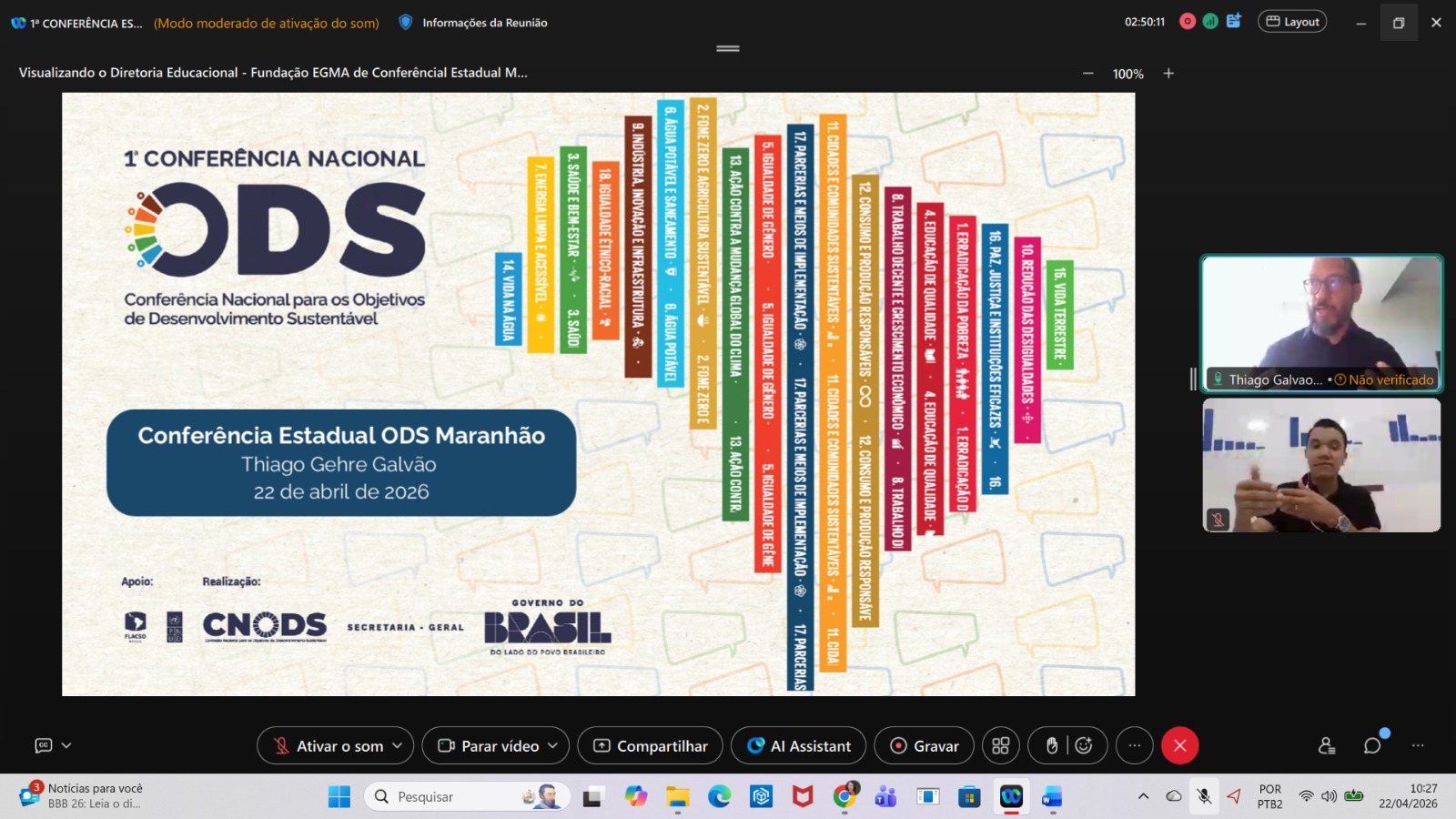 O evento, que segue até o dia 23 de abril, é promovido por meio da Assessoria Especializada na Articulação dos ODS/Uema e tem como tema “A Agenda 2030 no Brasil: fortalecer a democracia e defender os direitos humanos para a construção coletiva de um novo modelo de desenvolvimento sustentável”.