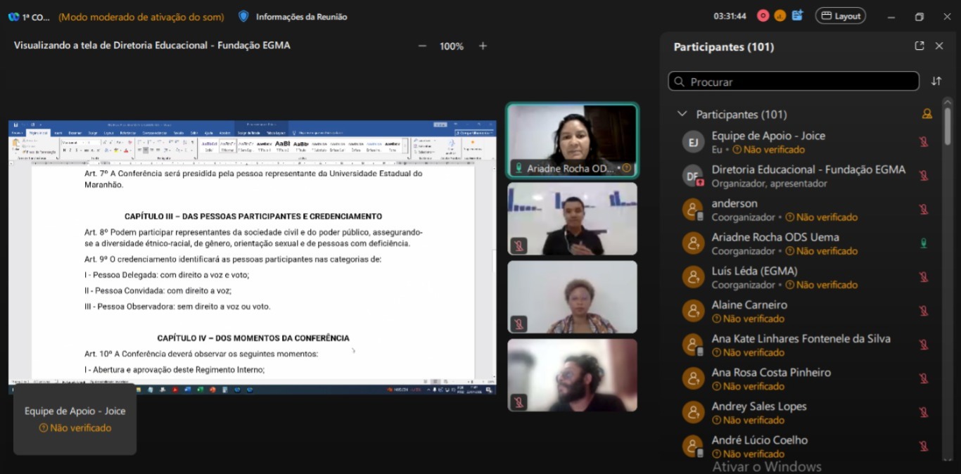 Realizada de forma virtual, pela plataforma da Escola de Governo do Maranhão (Egma), a conferência reúne representantes da sociedade civil, movimentos sociais, conselhos e órgãos públicos, com o objetivo de transformar desafios locais em propostas com potencial de impacto nacional.